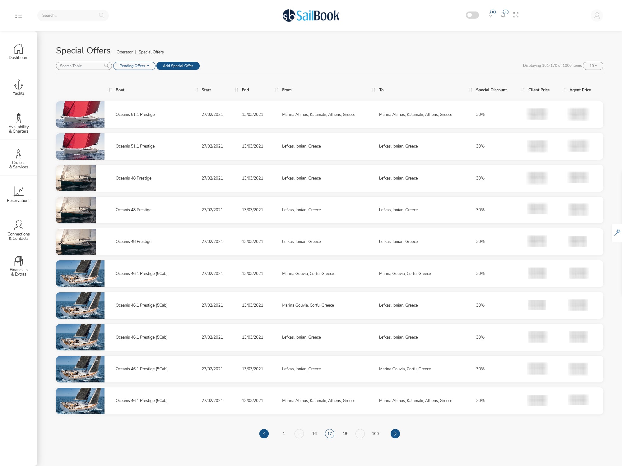 Operators create several kinds of special offers for their yachts. View the entire list of special offers sorted by date or search special offers for a specific period.